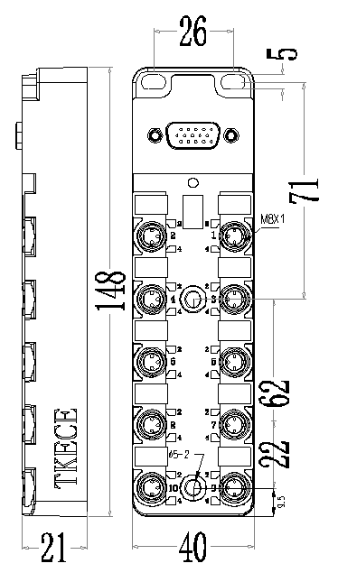 KMD长方形多管对接式插头 8路 12路 16路 20路